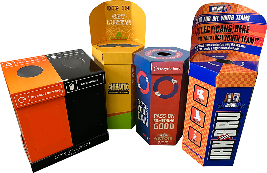 Ideal for aluminium cans and paper recylcing, available as single or double compartments. All bins have separate lids, for easy access and the product hole in the lid can be cut to any shape or size. Printed headers are optional extras to increase branding & encourage recycling through offers & by using QR codes