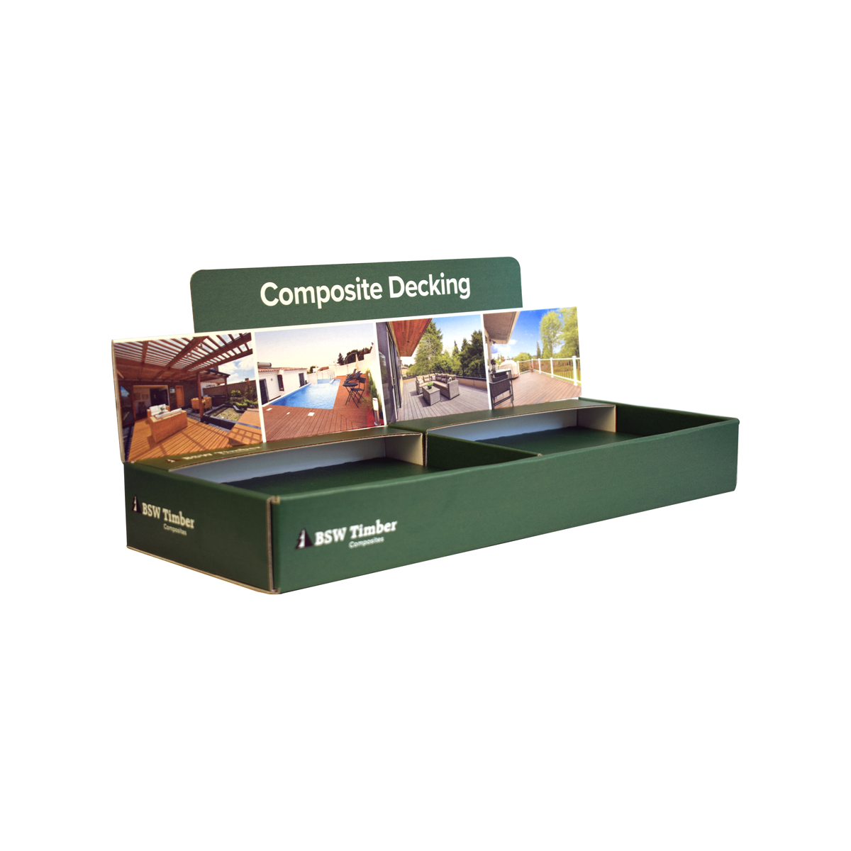 The Carding CDU is perfect for displaying two different products using divider inserts.