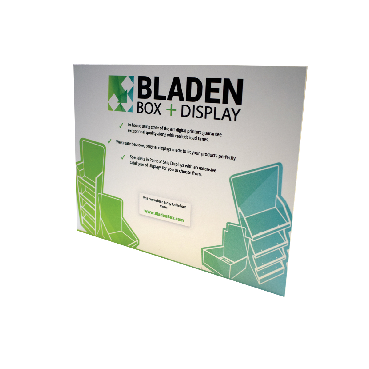 The Hatfield Counter Standee provides a professional and eye-catching display to attract consumers to your product. This standee can be used in both retail and event situations; ideal in-store strategically placed to promote your products and also perfect for introducing branding at exhibition stands. Enhance business leads as people are drawn to your specialist promotion.